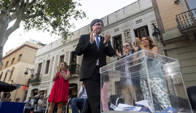 "Una inmensa mayoría del pueblo catalán quiere votar", ha dicho Puigdemont en referencia al referéndum convocado para el 1 de octubre. "Suspendiéndome o expulsándome de mi despacho, Madrid no va a anular esta voluntad", ha añadido. "No existe un poder suficientemente fuerte para cerrar el gran colegio electoral que será Cataluña el 1 de octubre".