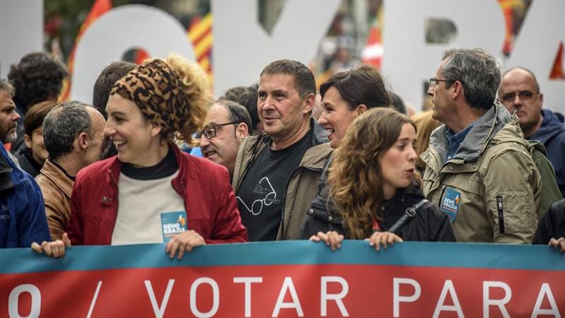 De EHBildu, su parlamentaria vasca Jasone Agirre ha comentado que "hoy sentimos alegría al ver que miles de personas llenan las calles de Bilbao para demostrar que están a favor de la democracia y de un derecho tan básico como es el derecho a decidir". "Miles de personas -ha agregado- que además quieren denunciar la actitud antidemocrática del Estado español, persiguiendo y amenazando a los representantes catalanes". Para Agirre, la manifestación de hoy "también demuestra que aquí hay una mayoría social y política, que aquí también se dan las condiciones para recorrer un camino parecido al de Cataluña".