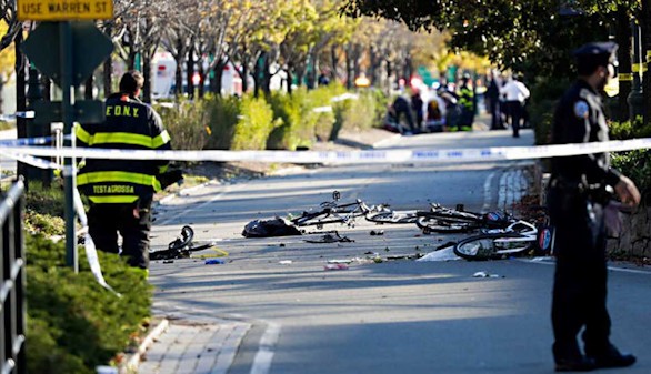 Según infoma la Policía de Nueva York, un hombre de 29 años, con una camioneta alquilada, condujo a través de una senda ciclista y peatonal atropellando a múltiples personas, dejando un balance final de ocho muertos y once heridos cuya vida no corre peligro.