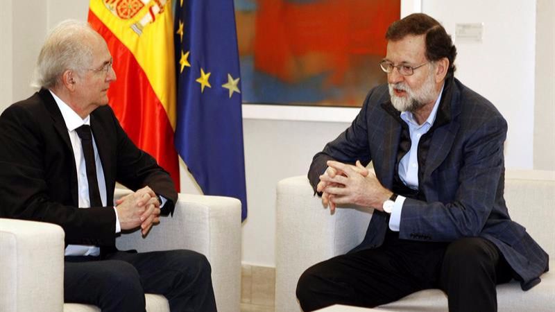 Una solución, han señalado las mismas fuentes, que necesariamente ha de pasar por la liberación de todos los presos políticos y la celebración de elecciones plenamente democráticas y homologadas en dicho país. Rajoy ha asegurado además al opositor venezolano que España continuará trabajando, a nivel bilateral y en colaboración con sus socios europeos e iberoamericanos, para coadyuvar a lograr ese objetivo.