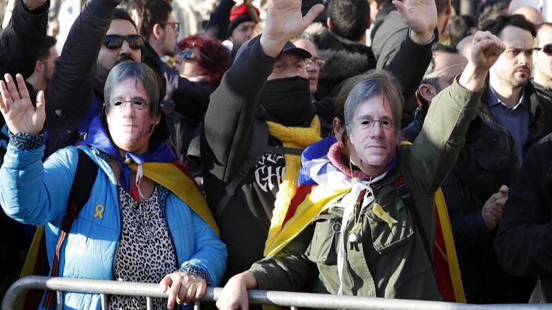 Precisamente, miles de personas con prendas de color amarillo, que simboliza la demanda de libertad para los presos independentistas, y caretas de Puigdemont se han reunido en el paseo Lluís Companys, en las inmediaciones del Parlament, a la hora en la que debía comenzar el pleno de la sesión de investidura.