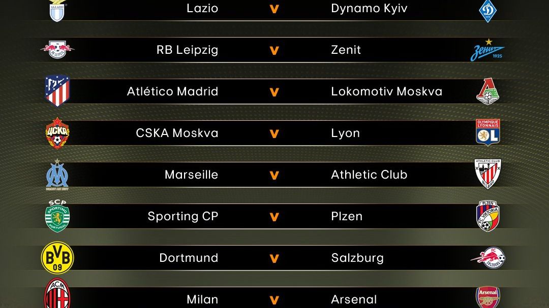 Otros enfrentamientos importantes son el Milan-Arsenal y el Borussia Dortmund-Salzburgo. Completan el cuadro de octavos de final el Sporting de Portugal-Viktoria Plzen, CSKA de Moscú-Lyon Leipzig-Zenit y Lazio-Dinamo de Kiev.