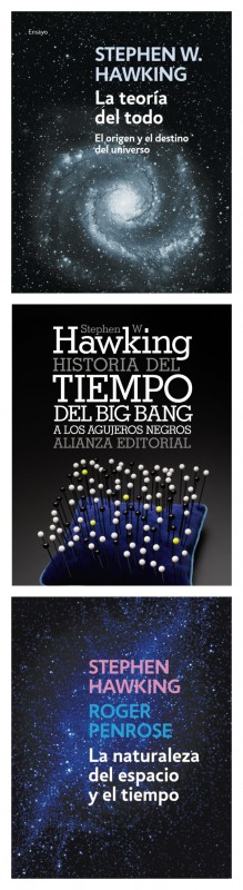 Otros de sus libros son: La estructura a gran escala del espacio-tiempo (1973), escrito junto con con George Ellis; Relatividad General: Revisión en el Centenario de Einstein (1979), con Werner Israel; 300 Años de Gravedad (1987), también con Werner Israel; Agujeros negros y pequeños universos (1993); Historia del tiempo de Stephen Hawking: una guía del lector (1993), recopilado por Gene Stone; Cuestiones cuánticas y cosmológicas (1995) y La naturaleza del espacio y el tiempo (1996) -ambos con Roger Penrose-; Denboraren historia laburra (1995); y El universo en una cáscara de nuez (2000).