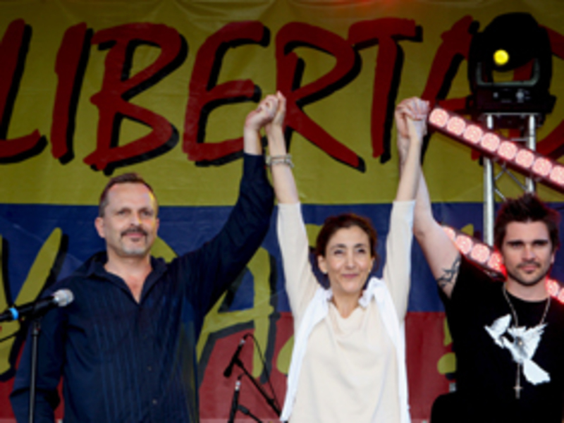 Miguel Bosé, al que el presidente de Colombia, Álvaro Uribe, ha concedido la nacionalidad colombiana, dijo que solo tenía un deseo. "Invitar a las FARC al diálogo, a la deposición de las armas y a la liberación de todos los secuestrados", afirmó el cantante.