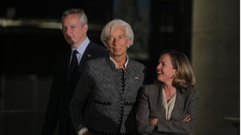 La directora del FMI, Christine Lagarde, y la ministra de Economía, Nadia Calviño,