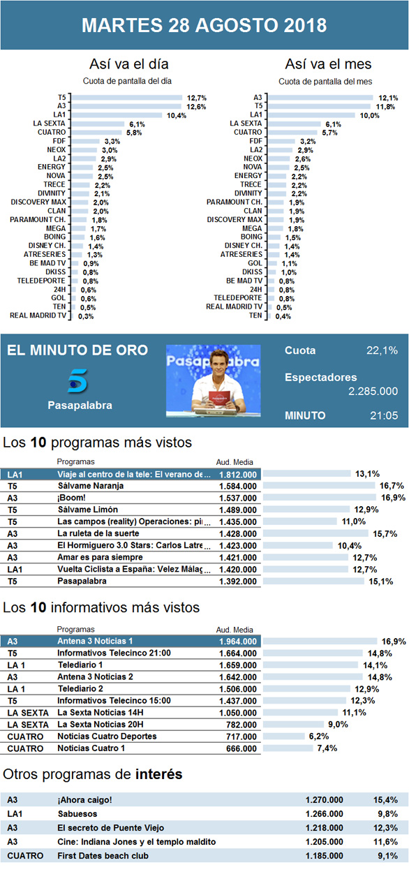 AUDIENCIAS: 28 DE AGOSTO DE 2018