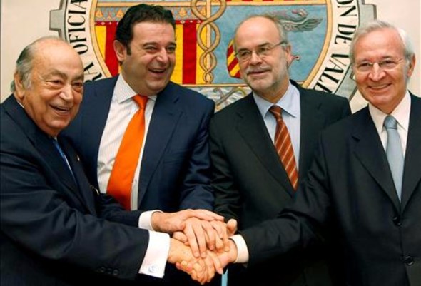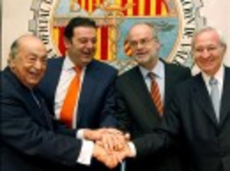 En la imagen, los consejeros de Economía de Cataluña y Valencia junto a sus respectivos presidentes de las Cámaras de Comercio.Cataluña, Valencia, Madrid, Murcia, Extremadura, Asturias y La Rioja han expresado sus discrepancias con el modelo presentado por el Ejecutivo, sumándose a Galicia en las críticas, mientras que