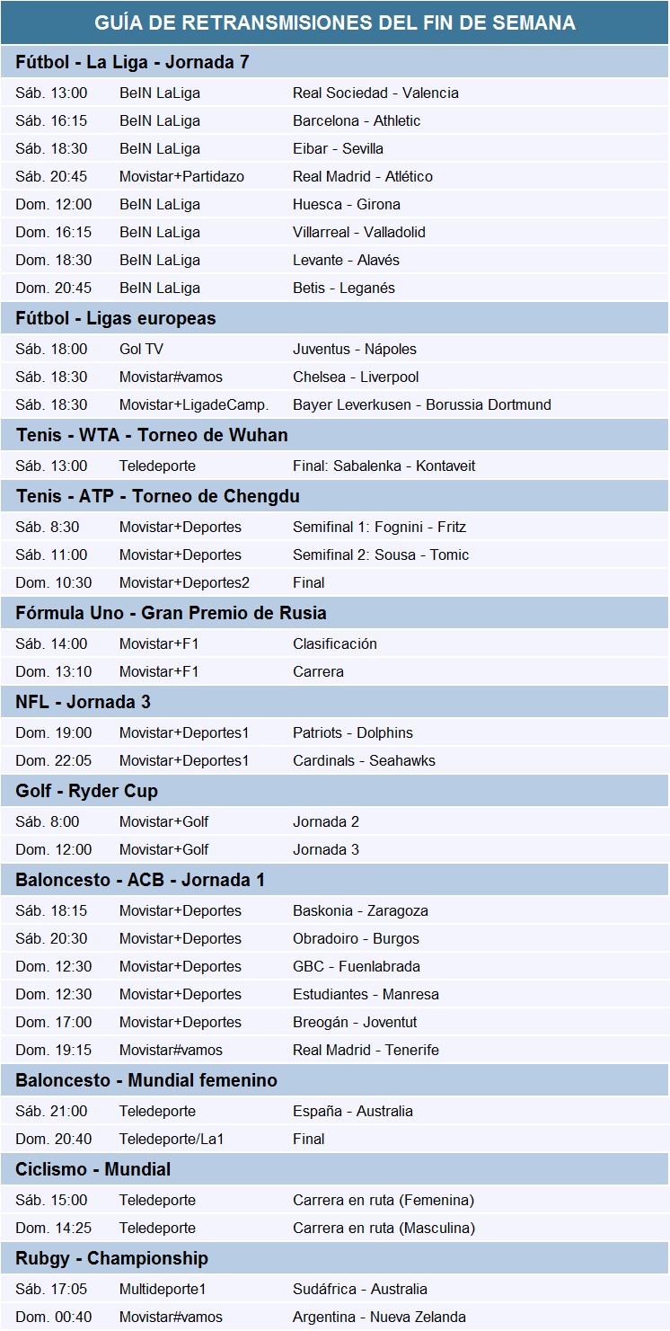 Guía de las retransmisiones deportivas