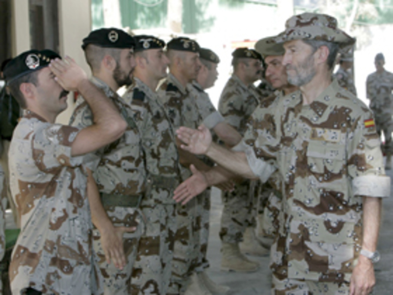El recién nombrado Jefe del JEMAD, José Julio Rodríguez, acompañado por los Jefes de los Estados Mayores de los tres Ejércitos, el general Fulgencio Coll (Tierra), el general José Jiménez Ruiz (Aire) y el almirante Manuel Rebollo (Marina), llegó al país asiático en un avión español desde Mann, en Kirguizistán.