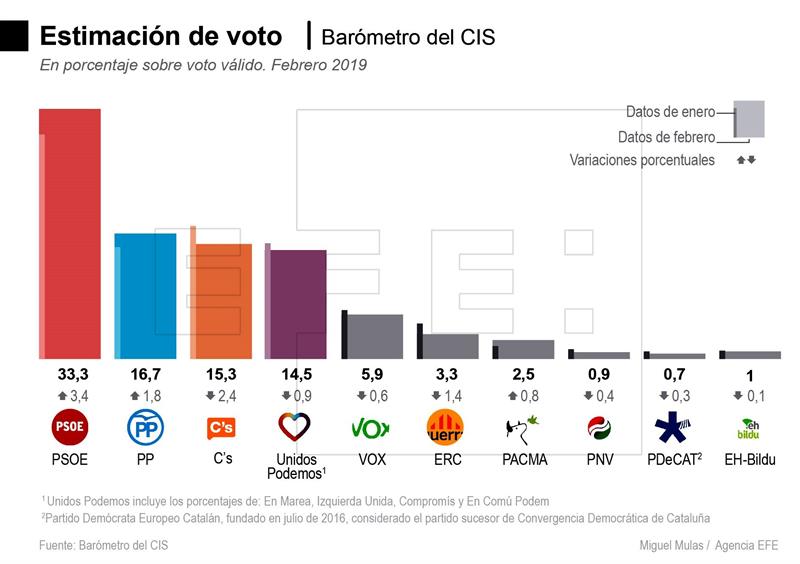 La encuesta del CIS se realizó entre el 1 y el 10 de febrero y es la primera tras el anuncio del adelanto de las elecciones generales al 28 de abril que el presidente del Gobierno, Pedro Sánchez, comunicó el pasado día 15.