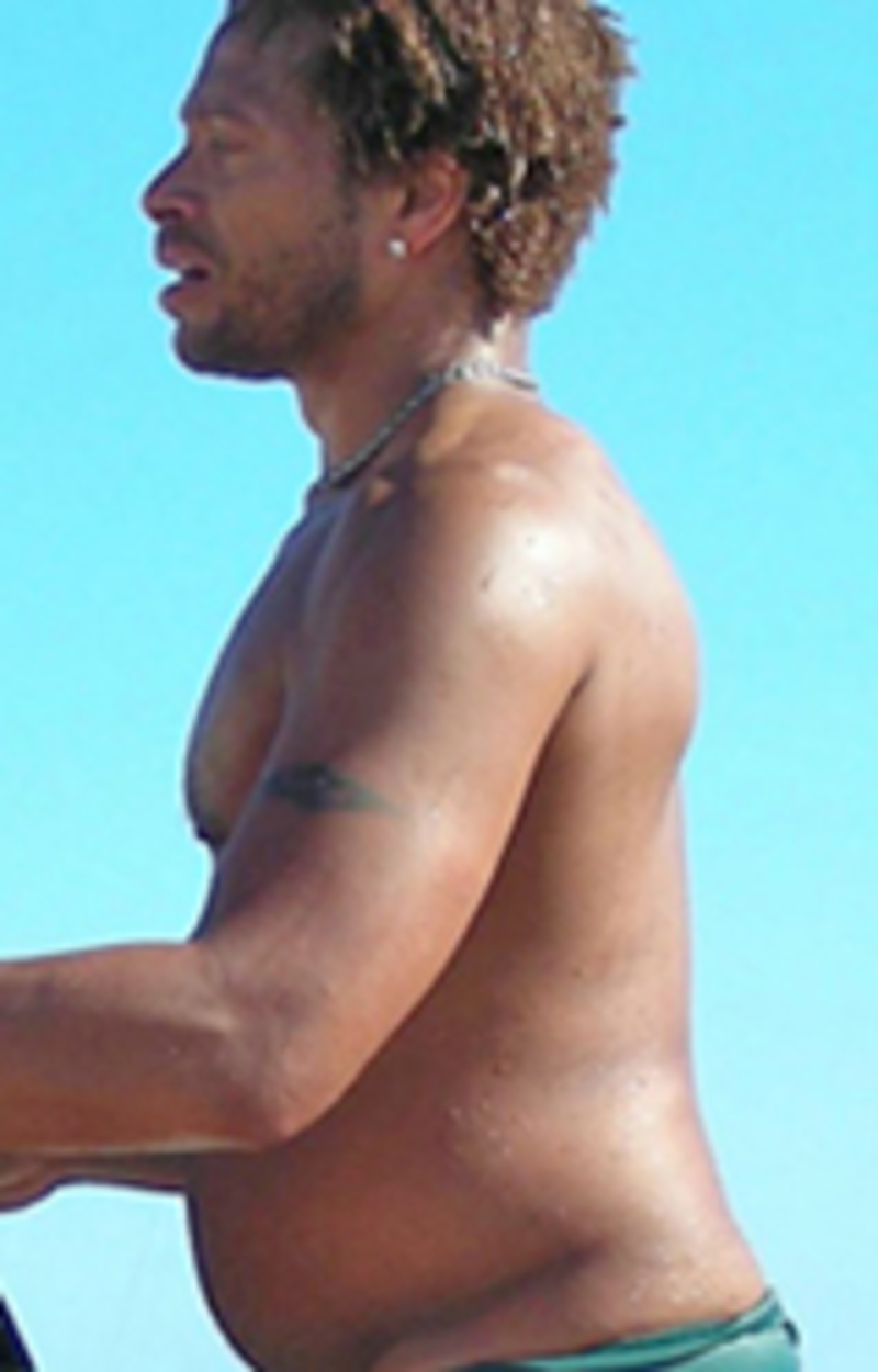 La estrella de televisión, de 41 años, ha conseguido embutir su cuerpo serrano en un pequeño y ajustado bañador de natación, de marca Speedo para ser más exactos. Además, cabe destacar un estilismo muy años setenta, con grandes anillos, pulsera y cadena de oro, rememorando al inefable M.A., de "El equipo A".