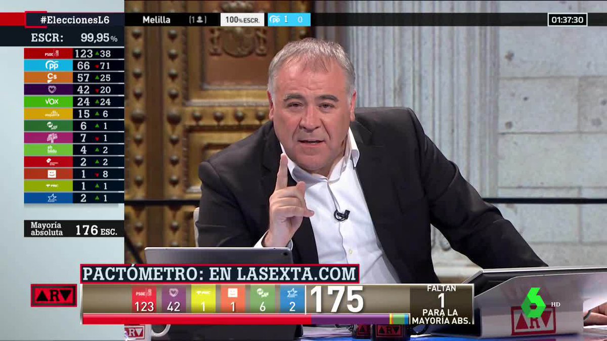 Este domingo, la televisión se centró en la cobertura de las elecciones generales. Y una vez más, entre todas las ofertas especiales para su seguimiento, los espectadores eligieron La Sexta y su programa especial de Al rojo vivo. El espacio, que estuvo dividido en tres partes, destacó durante los horarios comprendido entre las 21:14 y las 23:47 y, también, con su previo que comenzó a las 19:25. Además, junto con su posterior continuación hasta la 01:39, el programa obtuvo una media total de 2,8 millones de seguidores y de un 18,7 por ciento cuota de pantalla.
