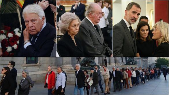 Los Reyes Felipe y Letizia, los Eméritos Juan Carlos y Sofía, todos los grandes dirigentes políticos españoles y miles de ciudadanos acudieron al Congreso a despedir al histórico líder socialista.
