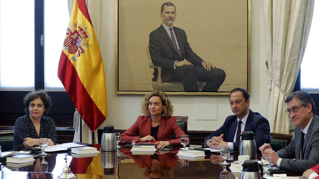 Tal y como se esperaba, la presidenta del Congreso ha pedido a los letrados de la Cámara un informe sobre los fundamentos que tendría el reglamento para finalmente suspender a los cuatro diputados presos de forma preventiva por el procés. No ha sido tampoco una sorpresa que la decisión adoptada en la Mesa ha sido avalada, sin votación, por los representantes socialistas y de Unidas Podemos.