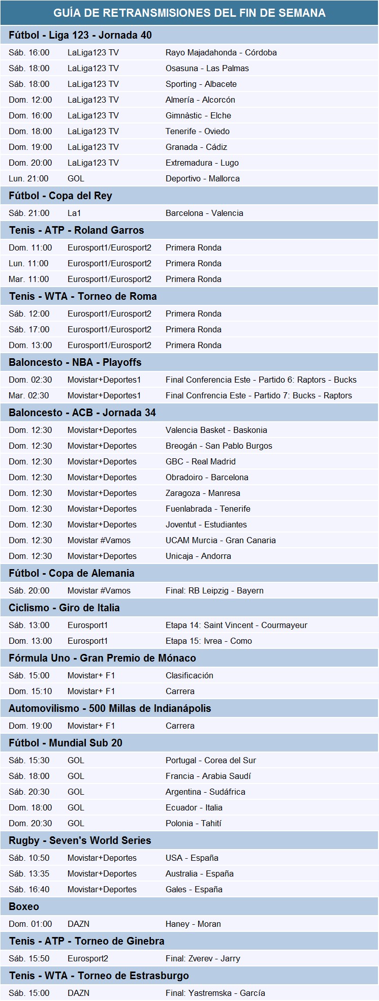 Guía de las retransmisiones deportivas