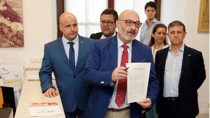 La iniciativa ha sido presentada en el registro en medio de una gran expectación mediática por el presidente del grupo, Francisco Serrano; su portavoz, Alejandro Hernández; y el portavoz adjunto, Rodrigo Alonso, acompañados por otros diputados de la formación, que han posado para las cámaras con el texto presentado.
