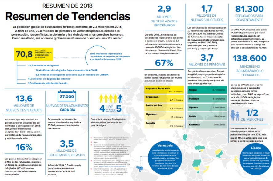 - Nuevos solicitantes de asilo: en 2018, el mayor número de nuevas solicitudes de asilo correspondió a venezolanos (341.800).