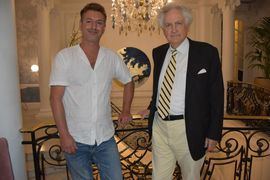 Léon Krier y Lluc Mir en un desayuno sobre Arquitectura