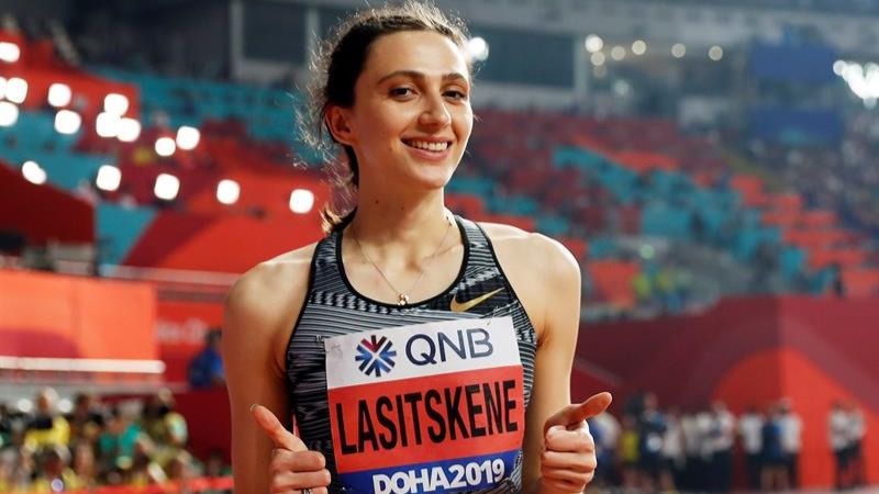 Un salto de 2,04 metros concedió a la rusa Mariya Lasitskene su tercer título mundial de altura, un logro inédito, en la cuarta jornada de los campeonatos del mundo, que coronó por segunda vez a Karsten Warholm en 400 m vallas aunque el noruego no pudo con el viejo récord mundial de Kevin Young (46.78).