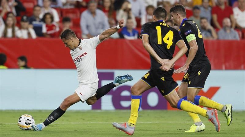 Incidencias: encuentro de la segunda jornada del Grupo A de la Liga Europa. Unos 30.000 espectadores en el Ramón Sánchez Pizjuán, con casi un millar de aficionados chipriotas en la zona acotada para la afición visitante en un partido declarado de alto riesgo ante la presencia de un grupo radical entre ellos. Césped en buen estado.
