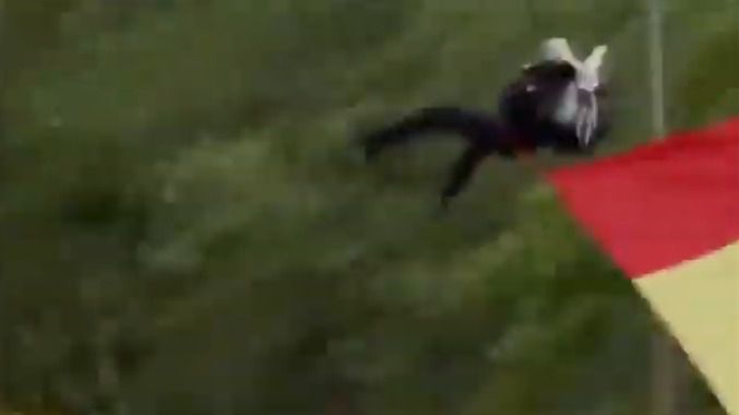 La anécdota del día la ha protagonizado un militar de la Patrulla Acrobática Paracaidista del Ejército del Aire que desplegado una bandera española en el cielo y durante el descenso ha impactado por el viento contra una farola.