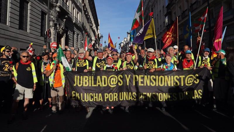 Con pancartas que señalan "la banca manda y el Gobierno ataca" o "blindemos las pensiones en la Constitución", varias mareas de pensionistas piden también acabar con la desigualdad de género en salarios y pensiones, subir la pensión que corresponda por viudedad y que la jubilación anticipada con 40 años cotizados no se penalice.