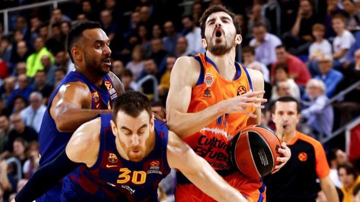 Duelo de dinámicas opuestas, aunque engañosas, en el Palau Blaugrana. El Valencia aplicó el mismo libreto que en el partido liguero. Defensa intensa buscando las cosquillas a Hanga, base por accidente ante las bajas de los tres bases de la primera plantilla, ataques rápidos y Loyd (17 puntos) como ejecutor desde el perímetro, mientras Dubljevic (11) se mantenía como faro en la pintura. Aún así, no le sirvió para irse al descanso con ventaja. El Barça, muy espeso en ataque estático, lo basó todo a la inspiración de sus estrellas. Al desequilibrio habitual de Mirotic (17 puntos) se sumó Álex Abrines, clave con dos triples consecutivos en los últimos compases del primer cuarto que dieron ventaja a los locales (21-19).