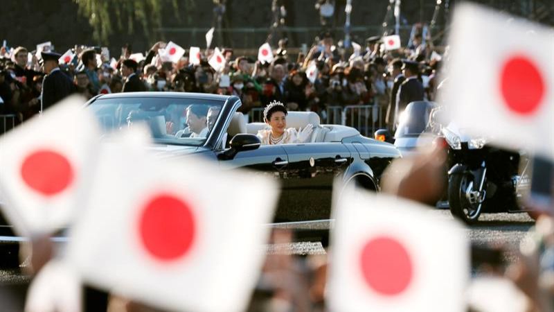 Naruhito se convirtió en emperador el pasado 1 de mayo, un día después de que su padre, el emperador emérito Akihito, protagonizara la primera abdicación en el país en más de 200 años, pero no fue hasta octubre que proclamó oficialmente su ascensión al Trono del Crisantemo en una ceremonia equivalente a una coronación. A dicha ceremonia, que tuvo lugar en una jornada lluviosa en la capital nipona, asistieron unos 2.000 invitados, entre dignatarios japoneses y jefes de Estado y representantes internacionales.