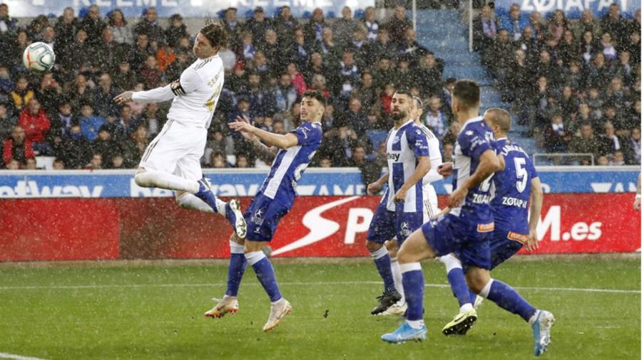 Un envío preciso de Kroos y un remate de cabeza académico de Ramos. Así logró el Real Madrid sortear el muro defensivo del Alavés en primer lugar antes de que el mismo Ramos provocara el penalti del empate local. Poco después, bajo el aguacero vitoriano, Carvajal acabó por empujar el 1-2 definitivo.