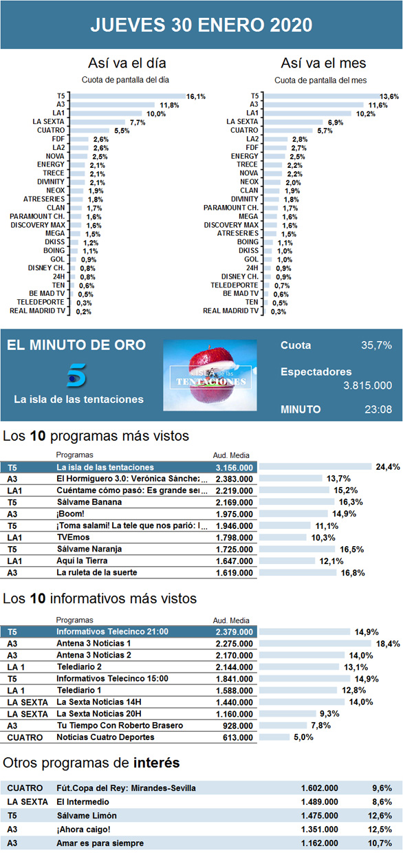 Mientras que La isla de las tentaciones sigue imparable los jueves en Telecinco, y sin ceder su liderazgo sea el día que sea, Cuéntame cómo pasó tampoco frenó su éxito y se mantuvo segunda opción con sus mejores datos de esta temporada.