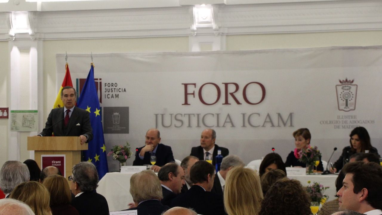 El decano del Colegio de Abogados de Madrid se ha referido hoy al papel de la abogacía institucional en la resolución del conflicto de Cataluña durante el Foro Justicia celebrado hoy en la sede del ICAM. Tras las intervenciones del ministro de Justicia, Juan Carlos Campo, y de la presidenta de la Abogacía Española, Victoria Ortega, y en respuesta a una pregunta de los asistentes, José María Alonso ha expresado su convicción de que la vía de solución del problema pasa necesariamente por la sociedad civil. “Soy de los que opinan que la solución por vía política es muy complicada, las pretensiones que se plantean por los grupos catalanes que están negociando con el Gobierno, como el derecho a la autodeterminación, no tienen encaje en la Constitución, y veo escaso margen para que el Gobierno pueda ceder”.