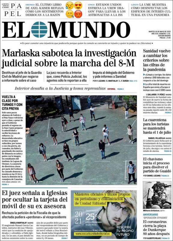 Las portadas de los periódicos de este martes 26 de mayo