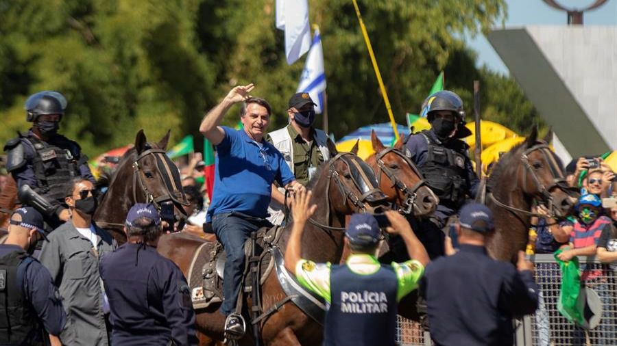 Bolsonaro, a caballo en una masiva manifestación que ignora el Covid-19