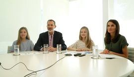 Felipe VI, doña Letizia, la princesa Leonor y la infanta Sofía han intervenido en esa reunión desde el despacho que habitualmente ha utilizado la reina para las conversaciones virtuales con diversos colectivos durante el estado de alarma.