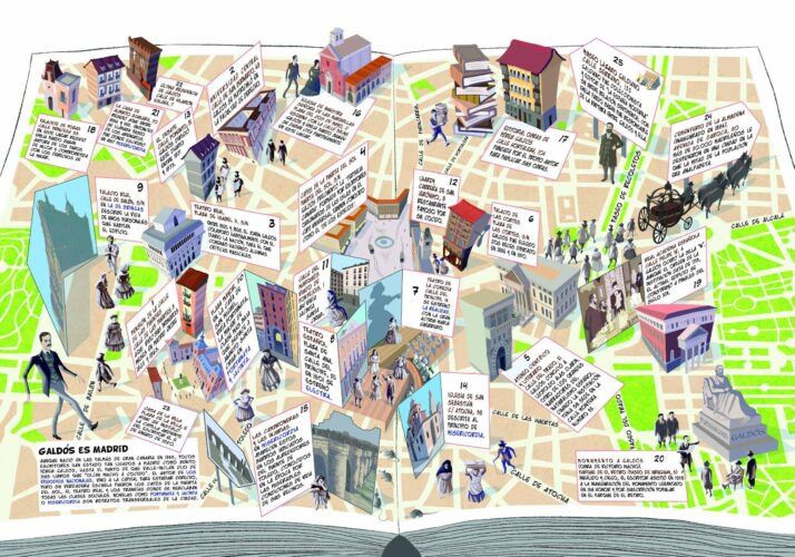 ‘Galdós es Madrid’ es una de las guías culturales promovidas por el Ayuntamiento que abordan distintos ámbitos de la ciudad como los paseos literarios, gastronómicos, rincones cinematográficos, guías de galerías, de museos, de bibliotecas públicas… Entre sus características destacan que están siempre centrados en Madrid, una ciudad comprometida con las artes a través de ilustradores con estilos diferenciados. Es una forma atractiva de conocer la ciudad que no es convencional y en la que se aporta una visión de autor.