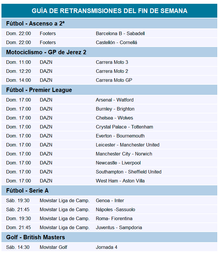 Guía de retransmisiones. Las motos vuelven a copar Jerez y la Premier cierra
