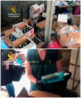 La Guardia Civil ha detenido a dos personas en A Coruña por comercializar un falso gel hidroalcohólico que mezclaban con aguardiente y que elaboraban en un laboratorio clandestino, y han sido intervenidos 6.400 litros del producto ya distribuido en hospitales y centros médicos de toda España.