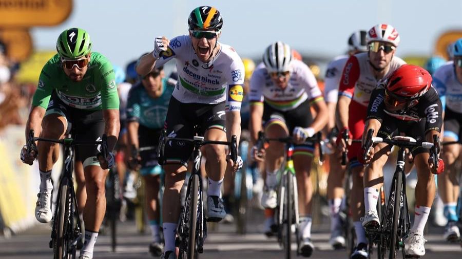 Así que tragados los nervios del despertar, el gran grupo echó a andar en una etapa absolutamente llana, propicia para la llegada al esprint y, también, para que más de uno quisiera dar un susto usando el viento como aliado. Y triunfaría en esos 168 kilómetros, que discurrieron entre la Isla de Oleron y la Isla de Ré (primera etapa en la historia de esta carrera que se da esa circunstancia), Sam Bennett. El irlandés sacó brillo al pedigrí del Deceuninck Quick Step con una victoria apurada, casi de foto-finish. Doblegó, en el último golpe de riñón al australiano Caleb Ewan (Lotto Soudal) y del eslovaco Peter Sagan (Bora). Este gran velocista, además, se enfundó en ansiado maillot verde de la regularidad.