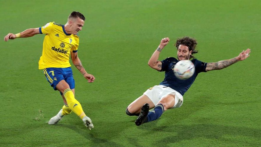 Osasuna, muy cohesionado, impidió que el Cádiz se acercase con peligro al área navarra, pese a tener los locales más presencia en el campo.