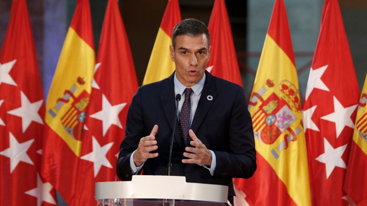El presidente del Gobierno, Pedro Sánchez, en la sede de la Comunidad de Madrid.