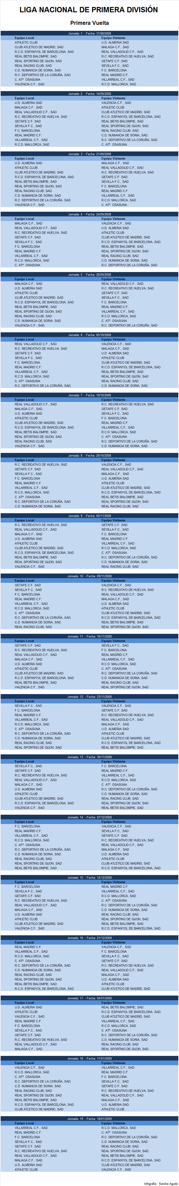 Calendario de la Liga 2008/2009