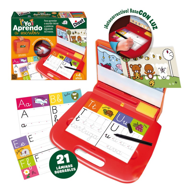 Este juguete educativo de Diset contiene 21 láminas donde tu hijo podrá repasar diferentes figuras y letras, tanto en mayúsculas como en minúsculas. Un juguete muy adecuado a partir de cuatro años, cuando comienzan a mostrar un mayor interés por el mundo de las letras. Aprenderán casi sin darse cuenta.