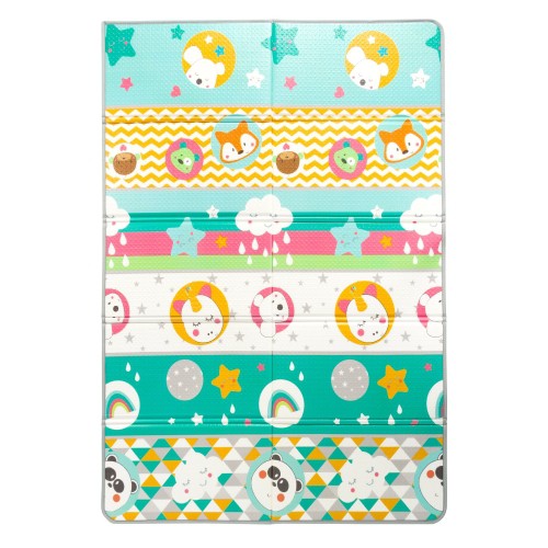 Manta de juegos y gimnasia para bebés. Es mullida, confortable, plegable y portátil. Mide 140x200 cm y es fácil de limpiar.