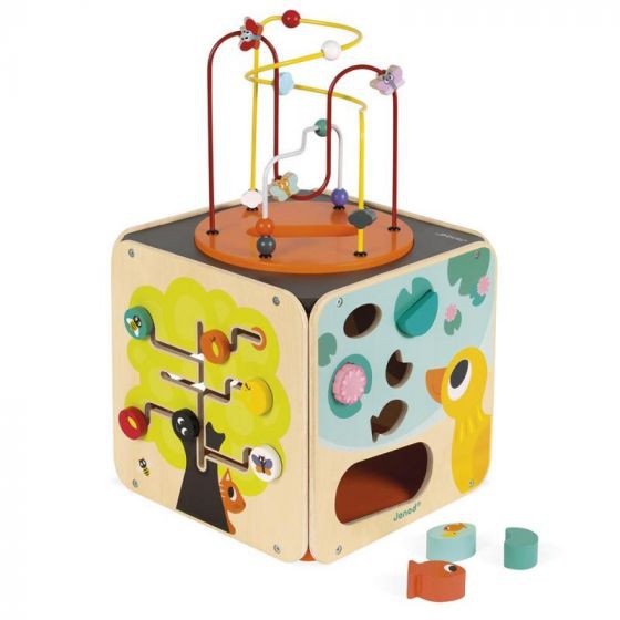 Este cubo multiactividades de Dideco, lleno de vistosos colores, incluye ocho juegos para niños de hasta tres años. Con él, los pequeños de la casa disfrutarán de horas de diversión mientras ejercitan su mente. En una de las caras, aprenderán a concentrarse y enfocar su atención; en otra, a diferenciar formas y colores; y en otra distinta podrán practicar sus habilidades motrices.
