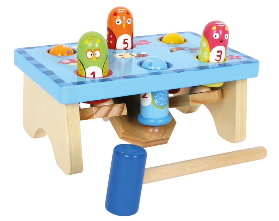 ¿Buscas un juguete entretenido y original para estas Navidades? Golpea al pájaro es el regalo perfecto. Se compone de una mesita de madera, con unos cilindros pintados como si fueran pájaros y un martillo para golpear con fuerza a todas los animalitos que salgan del tablero. Ayuda a mejorar la motricidad, los reflejos y la atención.