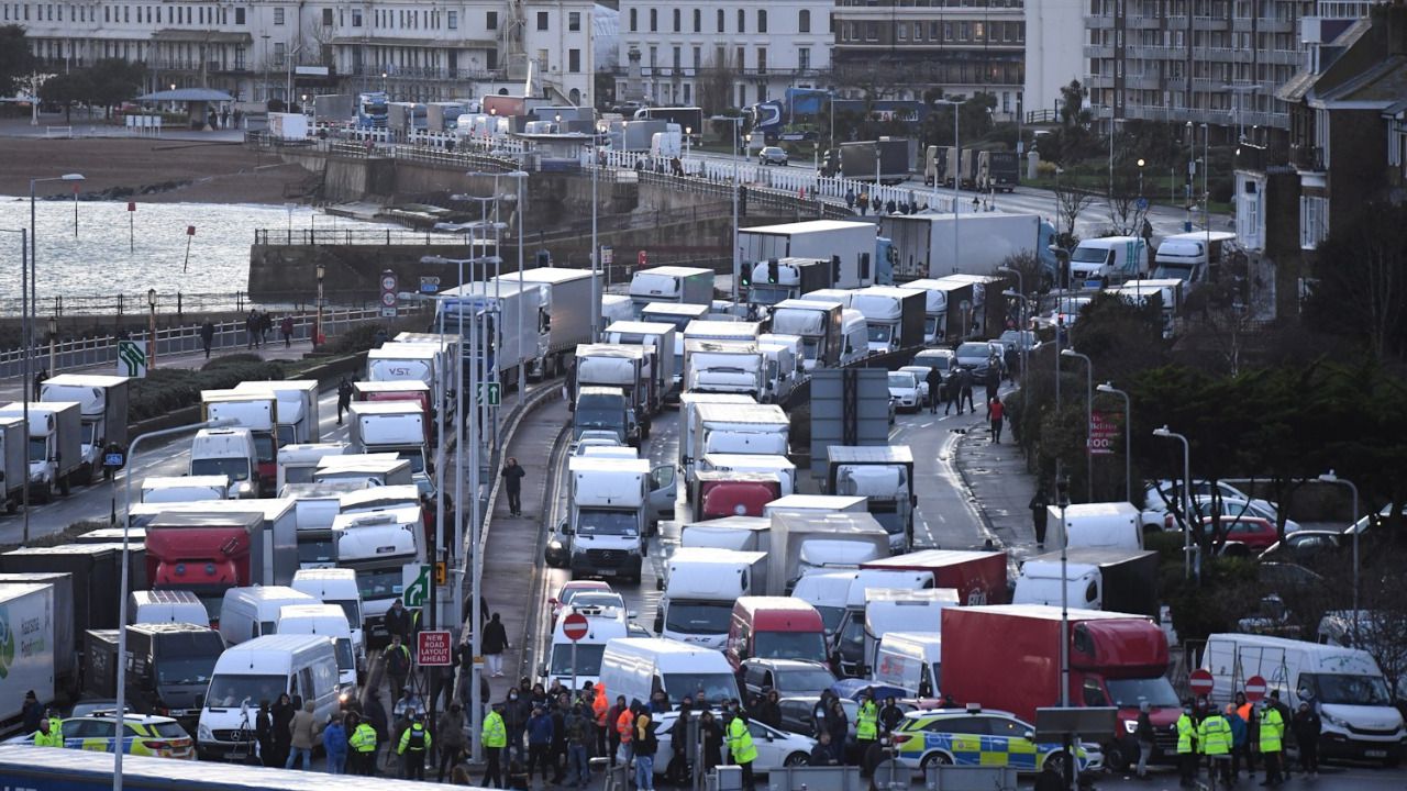 El ministerio británico de Transporte (DfT, en inglés) informó de que más de 5.000 camiones están aparcados en una instalación cercana a Dover donde han empezado a hacerse los test. "Pedimos a los camioneros que no viajen a Kent hasta nuevo aviso mientras trabajamos para aliviar la congestión en los puertos. Las pruebas han empezado", señaló el DfT en un comunicado.