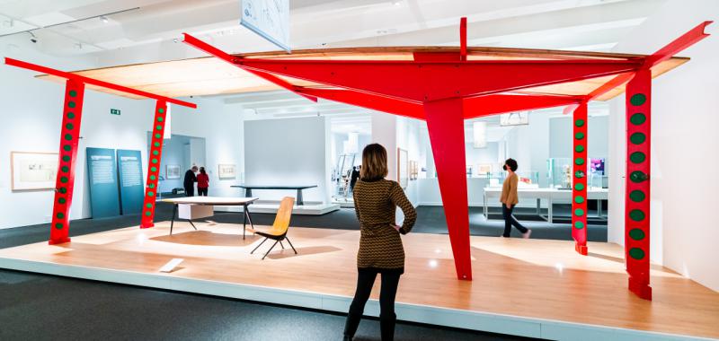 Por otro lado, la relación de Jean Prouvé con el Centro Pompidou viene de lejos, ya que,en 1971,el destacado creador presidió el jurado del concurso internacional para el futuro edificio del centro, el primero de estas características que se celebraba en Francia. Esta nominación fue polémica porque Prouvé notenía el título de arquitecto pero fue él quien contribuyó en gran medida a que fuera elegido el emblemático proyecto de Renzo Piano y Richard Rogers. Prouvé acompañó a los jóvenes arquitectos en la construcción de un edificio tan singular y que forma parte indisoluble de la identidad del centro. Más tarde, Renzo Piano participó en la escenografía de la exposición Jean Prouvéconstructeur, que el Centro Pompidou organizó en 1990.