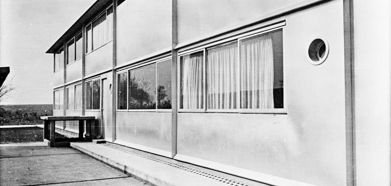 En los años 50, Prouvé construyó dos edificios singulares: su casa familiar en Nancy (1954), en un terreno accidentado y muy difícil, con elementos prefabricados, ligera y barata; y el Pabellón del Centenario del Aluminio (1954), instalado en el Quaid’Orsay de París, totalmente desmontable, y que algunos consideran su obra maestra.