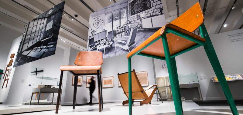 Para Prouvé, la creación de un mueble partía de las mismas bases que la concepción de un edificio. También en este ámbito apostaría por el carácter industrial de una creación para el gran público: su silla de comedor se convertiría en un icono del diseño. El universo de Jean Prouvé comprende asimismo la transmisión de sus conocimientos –fue un profesor atípico–. Esta exposición tiene por objeto proseguir esta labor.