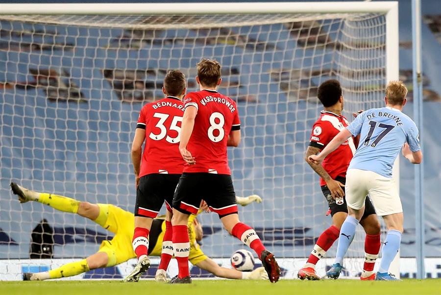 En la segunda mitad, el City sentenció el encuentro con los dobletes de Mahrez y de De Bruyne, mientras que Che Adams maquilló algo el marcador para el Southampton.